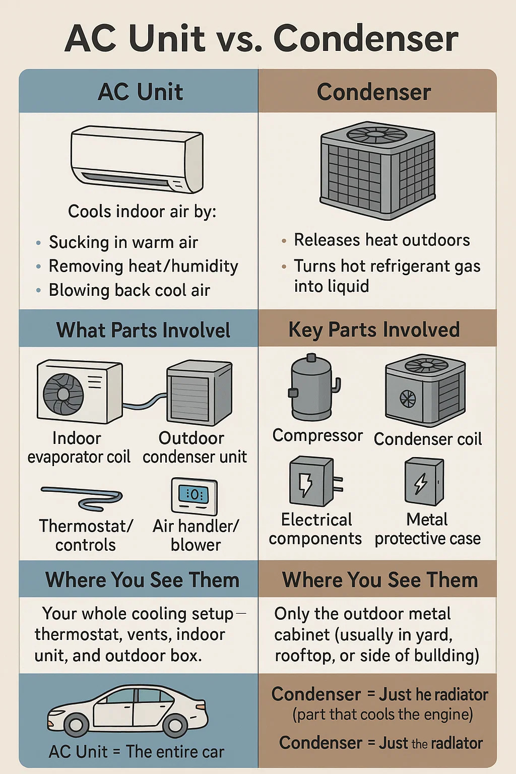 Íme az egyértelmű különbség a légkondicionáló (AC egység) és a kondenzátor :